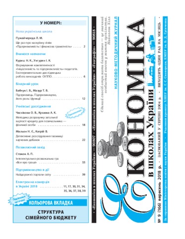 - Часнікова, Олена Володимирівна (orcid.org/0000-0002-8535-6668) and Кузавка, Артем Костянтинович (2018) Method of calculating the total cost of a loan for a borrower - an individual Економіка в школах України, 9 (166). pp. 18-21.