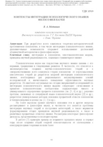 Contexts of psychological knowledge integration: philosophy of science (deposited 15 Jun 2018 14:23)