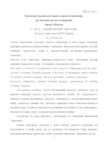 - Шевчук, Л.М. (2018) Teaching Ukrainian in the conditions of bilingualism: from reading to text creation Українська мова у світі : Збірник матеріалів V Міжнародної науково-практичної конференції, 17 серпня 2018 року. pp. 224-231.
