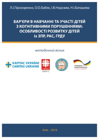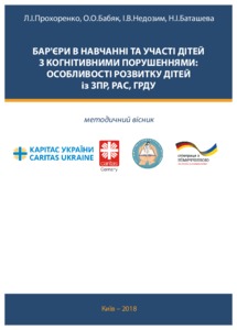 Прохоренко, Л.І. (orcid.org/0000-0001-5037-0550), Бабяк, О.О. (orcid.org/0000-0001-6337-1202), Недозим, І.В. and Баташева, Наталія Іванівна (orcid.org/0000-0002-2685-2258) (2018) Barriers to the learning and participation of children with cognitive disabilities: peculiarities of development of children with learning disabilities, autism spectrum disorders, attention deficit and hiperactivity disorder . Букрек, м. Чернівці, Україна. ISBN 978-617-7663-23-1