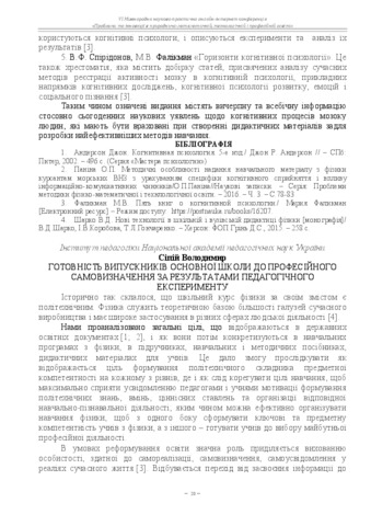 - Сіпій, Володимир Володимирович (orcid.org/0000-0003-4825-1426) (2018) The readiness of graduates of the main school for professional self-determination based on the results of the pedagogical experiment In: Матеріали VI Міжнародної науково-практичної оналйн-інтернет конференції "Проблеми та інновації в прородничо-математичній, технологічній і професійній освіті" 19-20 квітня 2018 року . РВВ ЦДПУ ім. В. Винниченка, м. Кропивницький, Україна, pp. 20-22.