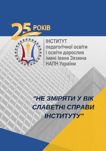 The book considers the formation and development of the Ivan Ziaziun Institute of Pedagogical and Adult Education of the National Academy of Educational Sciences of Ukraine (1993-2018). In the diachronic and synchronic dimensions outlines the formation of the Institute's image. The features of research activity, achievements in reforming pedagogical and professional education, personal development of various categories of adult population are characterized.