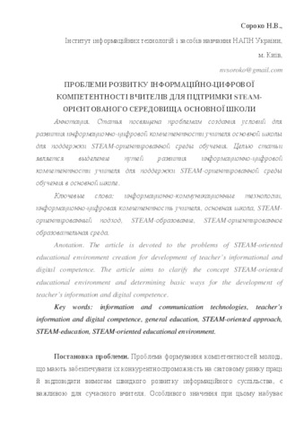The article is devoted to the problems of STEAM-oriented educational environment creation for development of teacher’s informational and digital competence. The article aims to clarify the concept STEAM-oriented educational environment and determining basic ways for the development of teacher’s information and digital competence.