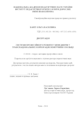 - Баніт, Ольга Василівна (2018) Systems of managers’ professional development in transnational corporations in Germany and Poland Masters thesis, Інститут педагогічної освіти та освіти дорослих.