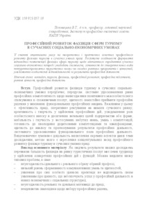 In the article the attention is focused on the theoretical and practical aspects of professional development of specialists of tourism in modern conditions. The peculiarities of formation of the relevant competences of professionals in tourism with regard to an adequate perception of the current socio-economic needs and consumer preferences, readiness to creation of new competitive tourist services on the basis of market priorities and values, awareness of personal responsibility for the results of professional activity.