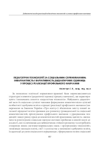 - Косянчук, Сергій Володимирович (orcid.org/0000-0003-1334-6011) (2018) Pedagogical technologies for social orientation: invariance and variability of didactic units in the process of implementing profile education In: Анотовані результати науково-дослідної роботи Інституту педагогіки НАПН України за 2018 рік . Педагогічна думка, м. Київ, Україна, pp. 87-88. ISBN 978-966-644-464-9