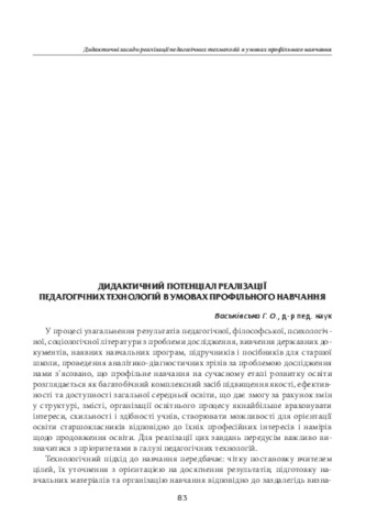 - Васьківська, Галина Олексіївна (orcid.org/0000-0002-8714-8512) (2018) Didactic potential of realization of pedagogical technologies in the profile education In: Анотовані результати науково-дослідної роботи Інституту педагогіки НАПН України за 2018 рік . Педагогічна думка, м. Київ, Україна, pp. 83-84. ISBN 978-966-644-464-9