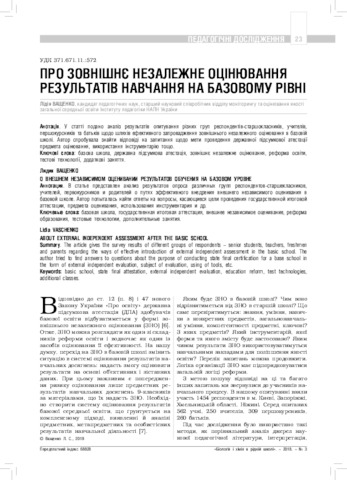 - Ващенко, Л.С. (orcid.org/0000-0002-0637-2142) (2018) About external independent assessment after the basic school Біологія і хімія у рідній школі, 3. pp. 23-29.