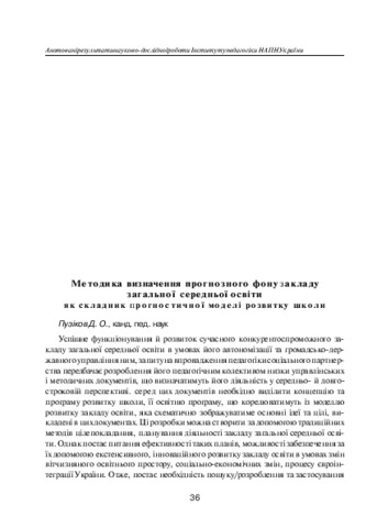 | Keywords: | Methodology; forecast background of the institution of general secondary education; prognostic model of school development |
