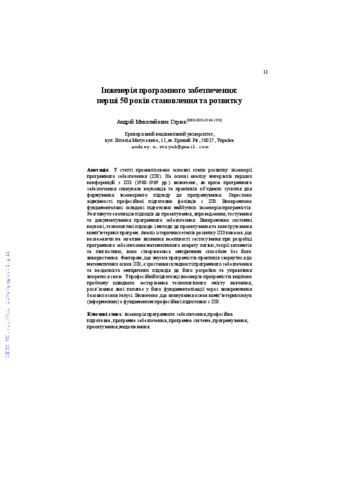 - Стрюк, А.М. (orcid.org/0000-0001-9240-1976) (2018) Software engineering: first 50 years of formation and development Computer Science & Software Engineering : Proceedings of the 1st Student Workshop (CS&SE@SW 2018), Kryvyi Rih, Ukraine, November 30, 2018 (2292). pp. 11-36. ISSN 1613-0073