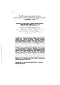 The object of the research is the development of Web-based software to support mathematics education in general secondary education institutions. The subject of the research is the development of adaptive educational software on the subject of “Fractional numbers” for students in grade 5 of general secondary education institutions. The purpose of the study is to theoretically substantiate, develop, and experimentally test adaptive learning software on the topic “Fractional numbers” for students in grade 5 of general secondary education institutions. The objectives of the study: 1) to analyze the state of the problem of developing and using adaptive software for teaching mathematics; 2) to substantiate the choice of development tools for adaptive educational software for secondary school students; 3) to develop and experimentally test adaptive educational software on the subject of “Fractional numbers” for students in grade 5 of general secondary education institutions. The results of experimental training using the developed software have shown that the development is not taking into account the change in the individual characteristics of the student (including psychological) in the learning process. This determines the following ways of its development, aimed at improving the level of adaptability: individualization of learning effects; formalization and implementation of the student model; taking into account the procedural characteristics of training in the student model.