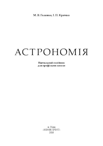 Головко, Микола Васильович (orcid.org/0000-0002-8634-591X) and Крячко, Іван Павлович (orcid.org/0000-0002-3595-5478) (2018) Astronomy . ТОВ «КОНВІ ПРІНТ», м. Київ, Україна. ISBN 978-617-7724-24-6