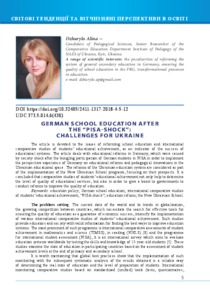 | Keywords: | education policy; German school education; international comparative studies of students’ educational achievement; “PISA-shock”; education reform; the New Ukrainian School. |