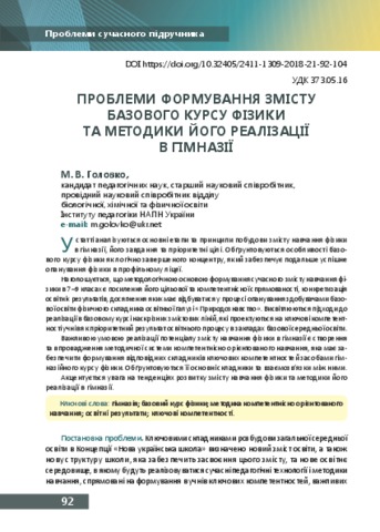 - Головко, Микола Васильович (2018) Problems of contents formation of the basic course of physics and methods of its realization at the gymnasium Проблеми сучасного підручника (21). pp. 92-104. ISSN 2411-1309