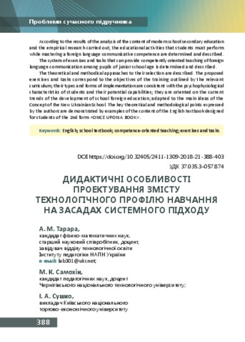 - Тарара, Анатолій Михайлович, Сушко, І.А. and Самохін, М. (2018) Didactic features of designing the content of technological profile of training on the basis of the system approach Проблеми сучасного підручника (21). pp. 388-403. ISSN 2411-1309