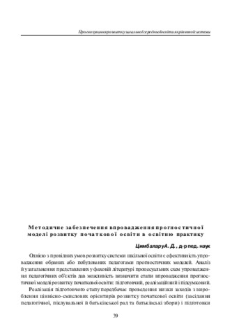 In the theses is determined and substantiated the methodological support for the implementation of the prognostic model of the development of primary education in educational practice.