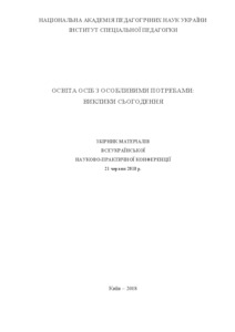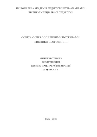 Інститут спеціальної педагогіки і психології ім Миколи Ярмаченка, НАПН України (2018) Education of persons with special needs: challenges of the present: collection of materials of the all-Ukrainian scientific and practical conference, June, 21, 2018 . Наша друкарня, м. Київ, Україна.