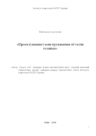 The training program "Design and construction of engineering objects"" is intended for profile training of engineering-technical technologies. The main task of profile education in its content is the mastering of senior pupils knowledge, skills, competencies on the basis of design and development activities, providing pupils with a conscious choice of their future profession of engineering and technical direction. To do this, the program details the peculiarities of the processes of designing and constructing technical objects by specialists and pupils, gives a wide range of ways to develop creative technical abilities of pupils, provides for the implementation of high school creative projects. Methods and ways of industrial design and construction, information on the features of patenting of technical objects are considered.