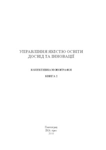 The monograph covers the topical issues of quality education management in the domestic educational space from the point of view of acquired experience and identification of innovative ways of their solution.