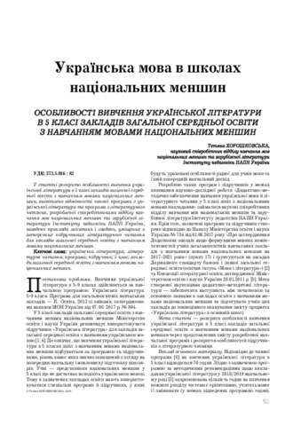 - Хорошковська, Тетяна Петрівна (orcid.org/0000-0001-9505-0817) (2018) Features of the study of Ukrainian literature in the 5th grade of institutions of general secondary education with teaching in the languages of national minorities Українська мова і література в школі, 6 (141). pp. 51-54.