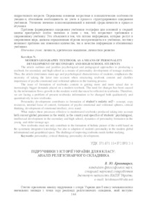 - Кришмарел, В. Ю. (2017) Textbooks on history of Ukraine for 8 form: analytics of the religious component Проблеми сучасного підручника (19). pp. 144-151.
