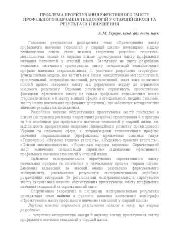 ng the content of profile technology education in the high school have been revealed in the annotated results of research work for 2017. The technology of system design of the content of specializations of the technological profile of training of high school pupils has been developed, which is illustrated by the developed structural-functional model. The scientific substantiation is the basis for designing the content of 4 programs and 4 manuals for profile technology education in the high school. Experimental testing of the designed content has been carried out.