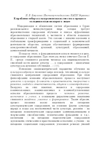 - Бакуліна, Наталія Валеріївна (orcid.org/0000-0002-8970-2660) (2017) To the problem of selection of cultural texts in the process of mastering the Hebrew language in the Lyceum The Jewish Speech (8-1). pp. 71-80. ISSN 2312-1912, online 2541-9012