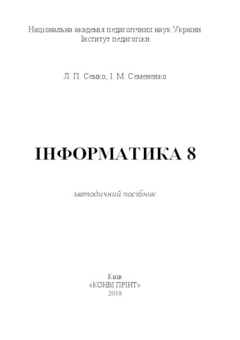 Семко, Лариса Петрівна and Семененко, Ірина Миколаївна (2018) "Informatics 8": methodical manual . ТОВ «КОНВІ ПРІНТ», м. Київ, Україна. ISBN 978-617-7724-20-8