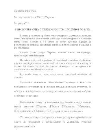| Keywords: | history of Ukraine; cultural content; etnocultural orientation of education |