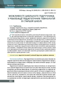 - Трубачева, Світлана Едуардівна (orcid.org/0000-0002-1400-9773) (2018) The possibility of school textbooks in the implementation of educational technology in high school Проблеми сучасного підручника (21). pp. 404-411. ISSN 2411-1309