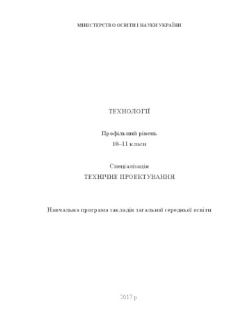 Text (Тарара А.М., Вдовченко В.В. Технології. Профільний рівень. 10–11 класи. Спеціалізація «Технічне проектування». Навчальна програма закладів загальної середньої освіти. – К., 2017. – 27 с.)