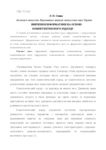 - Семко, Лариса Петрівна (2018) Study of informatics based on a competent approach Academic notes. Series: Pedagogical sciences (169). pp. 132-136. ISSN 2521-1919