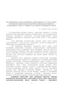In the theses present results the experimental verification of the effectiveness of the structural-functional model the formation of a variant component of the content of education of upper secondary school.