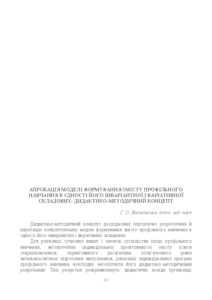 - Васьківська, Галина Олексіївна (orcid.org/0000-0002-8714-8512) (2017) Approbation of the model of formation of the content of profile education in the unity of its invariant and variational components: didactic-methodical concept In: Анотовані результати науково-дослідної роботи Інституту педагогіки НАПН України за 2017 рік . Педагогічна думка, м. Київ, Україна, pp. 67-69. ISBN 978-966-644-398-5