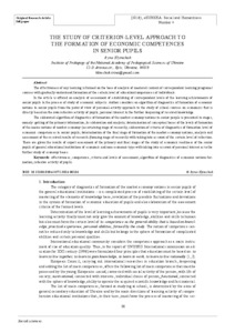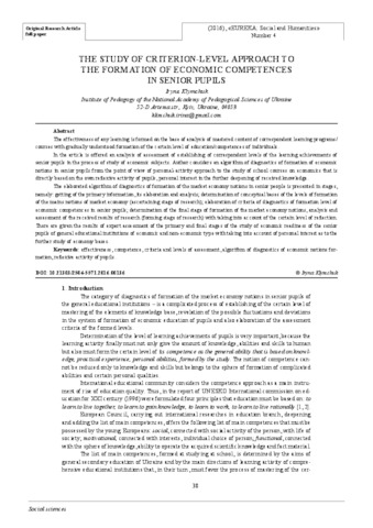 - Klymchuk, Iryna (orcid.org/0000-0002-1883-480X) (2016) The study of criterion-level approach to the formation of ekonomic competences in senior pupils EUREKA: Social and Humanities, 4. pp. 38-46. ISSN 2504-5563