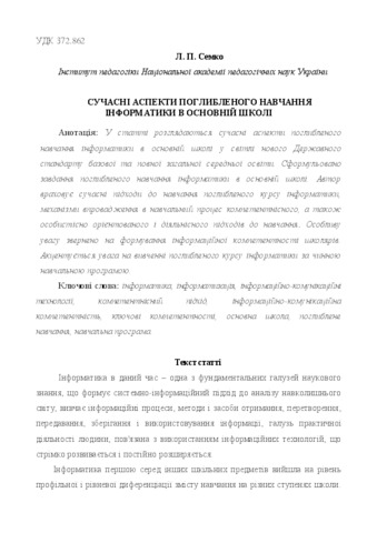 - Семко, Лариса Петрівна (2016) Modern aspects of depth study informatics in secondary school Наукові записки. Серія : Проблеми методики фізико-математичної і технологічної освіти, 1 (9). pp. 41-47. ISSN 978-966-7406-67-7