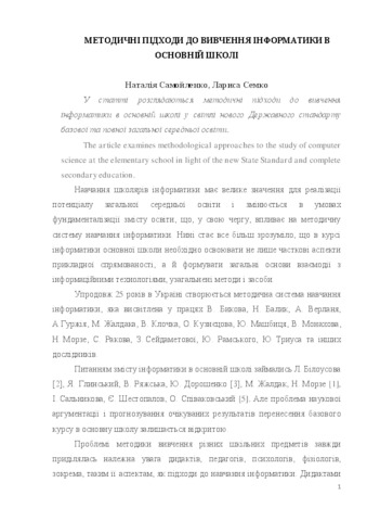 - Семко, Лариса Петрівна and Самойленко, Наталія Іванівна (2015) Methodological approaches to the study of informatics in the primary school Наукові записки. Серія: Проблеми методики фізико-математичної і технологічної освіти, 2 (7). pp. 76-82. ISSN 978-966-7406-67-7