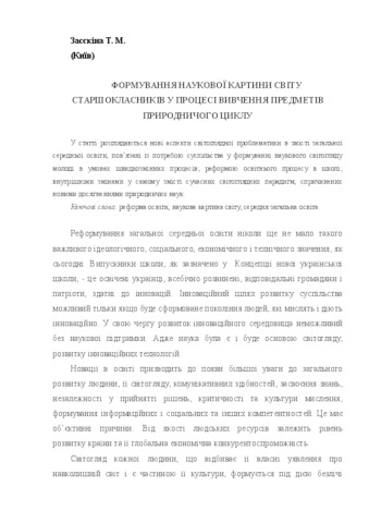 | Keywords: | Еducational reform, scientific picture of the world, secondary education. |