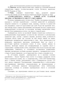 - Пометун, Олена Іванівна and Ремех, Тетяна Олексіївна (2018) "Civic Education" - a new high school course: features of content and methodology Abstracts of the All-Ukrainian Scientific and Practical Conference «Theory and Methods of Formation of Civic Competence of Senior Students in the Conditions of Innovative Development of a Modern Gymnasium»: Kyiv, October 18, 2018. pp. 6-16.
