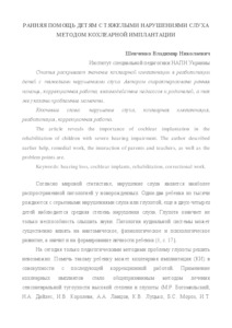 - Шевченко, В.М. (orcid.org/0000-0003-0119-3206) (2013) Early help for children with severe hearing impairments using cochlear implantation Social Sciences. Psychology. Online resource: DMCA / GDPR. pp. 1-5.