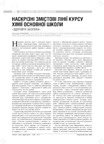 - Нетрибійчук, Олександр (2018) Throughout content lines in the course of chemistry of the basic school. "Health and safety" Біологія і хімія в рідній школі, 5 (128). pp. 32-35.