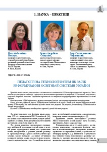 - Поліхун, Н.І. (orcid.org/0000-0002-0176-0752), Сліпухіна, Ірина Андріївна (orcid.org/0000-0002-9253-8021) and Чернецький, Ігор Станіславович (orcid.org/0000-0001-9771-7830) (2017) STEM educational technology as a tool for reforming education in Ukraine Education and Development of Gifted personality, 3 (58). pp. 5-9. ISSN 2309 ‑3935