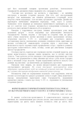 The theses reveal the peculiarities of the formation of historical competence in the lessons of cultural content in the course of the history of Ukraine (7-8 cl.).