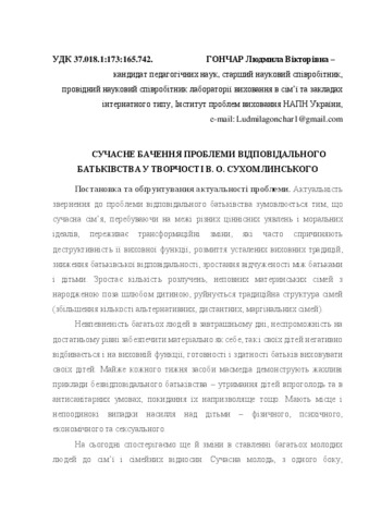Text (Сучасне бачення проблеми відповідального батьківства у творчості В.О.Сухомлинського)
