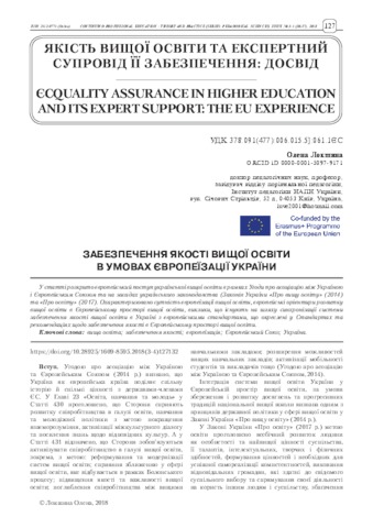 | Keywords: | European Union; Europeanisation; higher education; quality assurance; Ukraine |