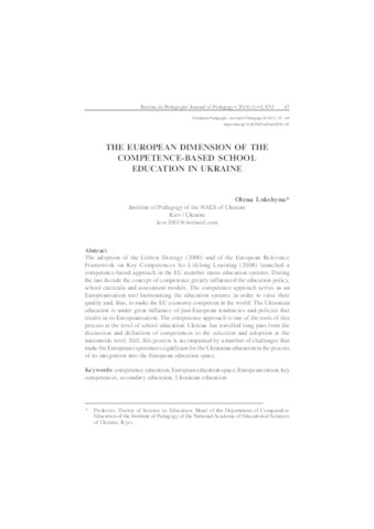 - Lokshyna, O.I. (2018) The European dimension of the competence-based school education in Ukraine Revista de Pedagogie, 1 (67). pp. 47-64. ISSN 2559-639X