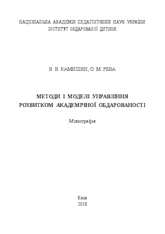 - Камишин, Володимир Вікторович (orcid.org/0000-0002-8832-9470) and Рева, Олексій Миколайович (orcid.org/0000-0002-5954-290X) (2018) Methods and models of management of the development of academic giftedness Project Report. Інститут обдарованої дитини НАПН України, м. Київ, Україна.
