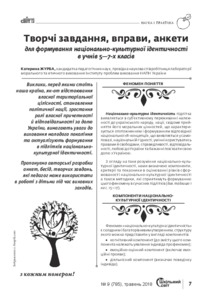 - Журба, Катерина Олександрівна (orcid.org/0000-0002-3854-4033) (2017) Creative tasks, exercises, questionnaires for the formation of national-cultural identity in students 5-7 grades Шкільний світ (9). pp. 7-19.