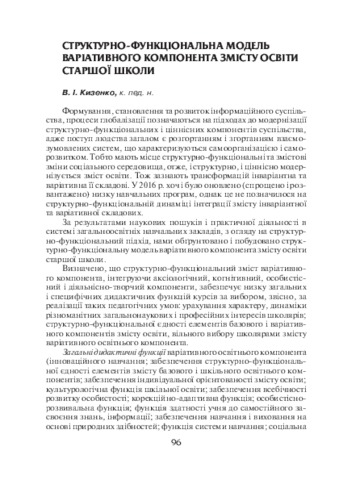 The theses describe the general and specific didactic functions of the variable component of the content of upper secondary education education. The components of the structural-functional model of the variable component are presented.