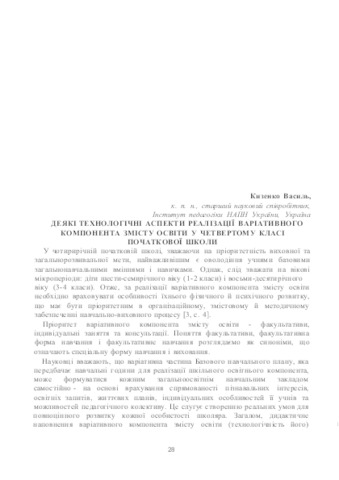 - Кизенко, Василь Іванович (2015) Some technological aspects of the implementation of the variable component of the content of education in the fourth grade of elementary school In: Технологічні аспекти професійної підготовки майбутніх учителів початкової школи : матеріали Міжнародної Інтернет-конференції, м. Миколаїв, 11 грудня 2015 року (4). ТОВ «Іліон», м. Миколаїв, Україна, pp. 28-30.